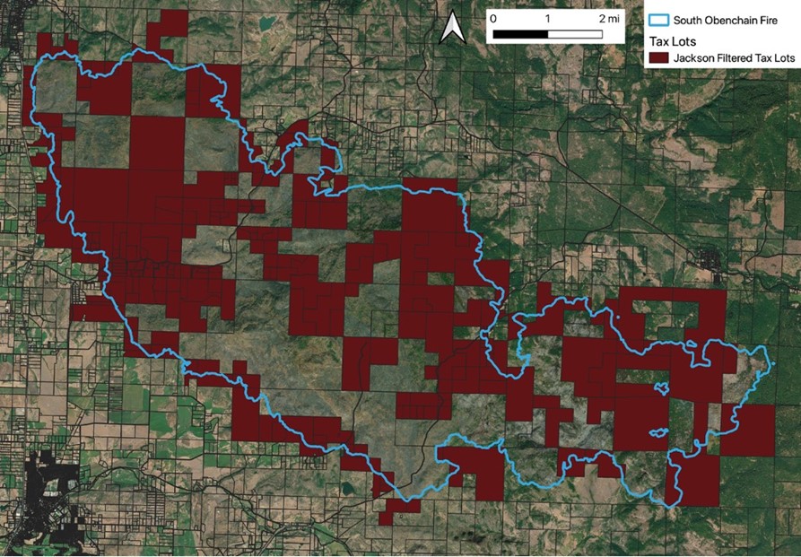 Map 2: Parcels Wholly or Partially Within the Boundary of the Maximum Extent of Burn for the South Obenchain Fire, which Plaintiffs’ Expert Witnesses Contend Experienced Fire Activity During that Fire
