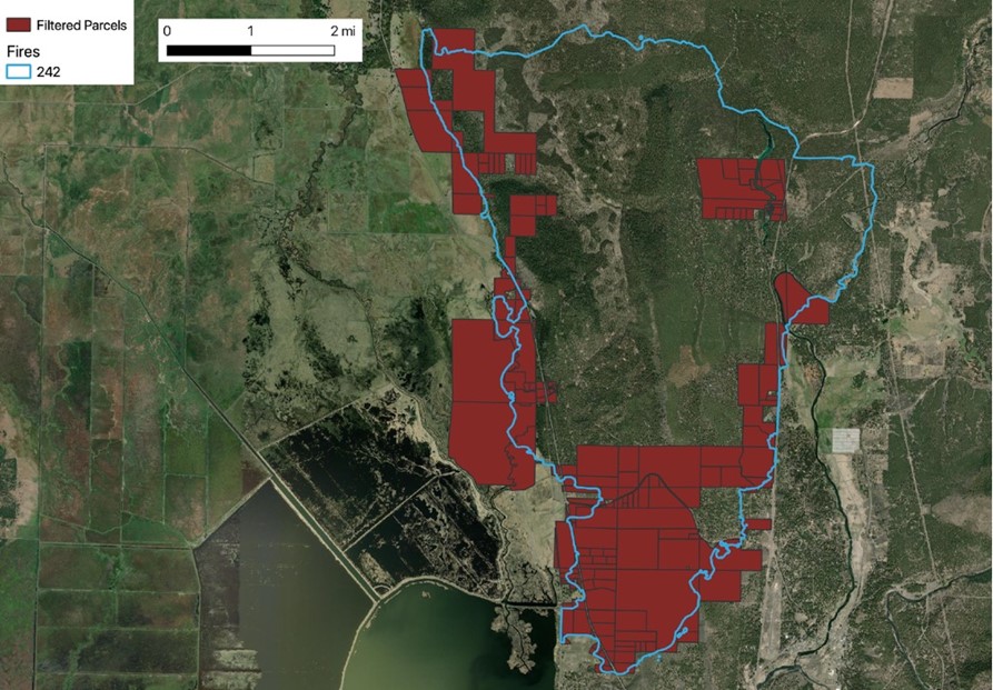 Map 3: Parcels Wholly or Partially Within the Boundary of the Maximum Extent of Burn for the 242 Fire, which Plaintiffs’ Expert Witnesses Contend Experienced Fire Activity During that Fire